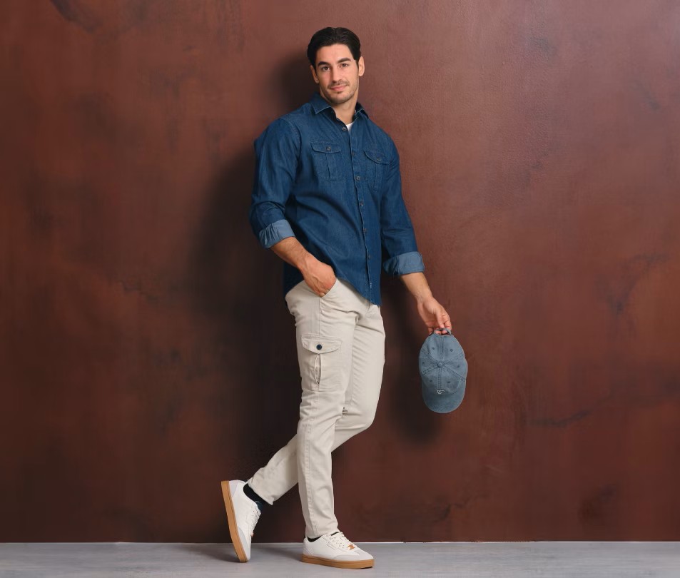 Camisa denim en color azul oscuro , confeccionada en tejido de algodón 100%. Corte semientallado, cuello clásico abotonado, cierre mediante botonadura frontal , manga larga terminada en puño abotonado y dos bolsillos con botón en el pecho . Etiqueta textil cosida en el extremo inferior de la botonera y en el lateral. Caballo bordado .