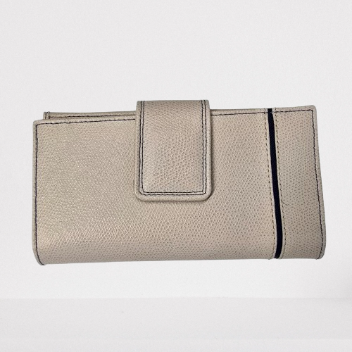 BILLETERA PARA MUJER EN PIEL CON BANDA EN MARINO .