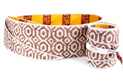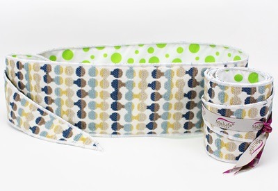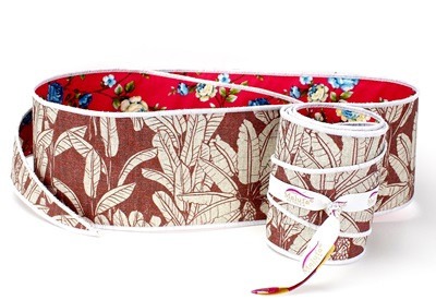 Esta imagen muestra un fajín reversible de Ajoli58 diseñado con un patrón de ballenas ,reversible .