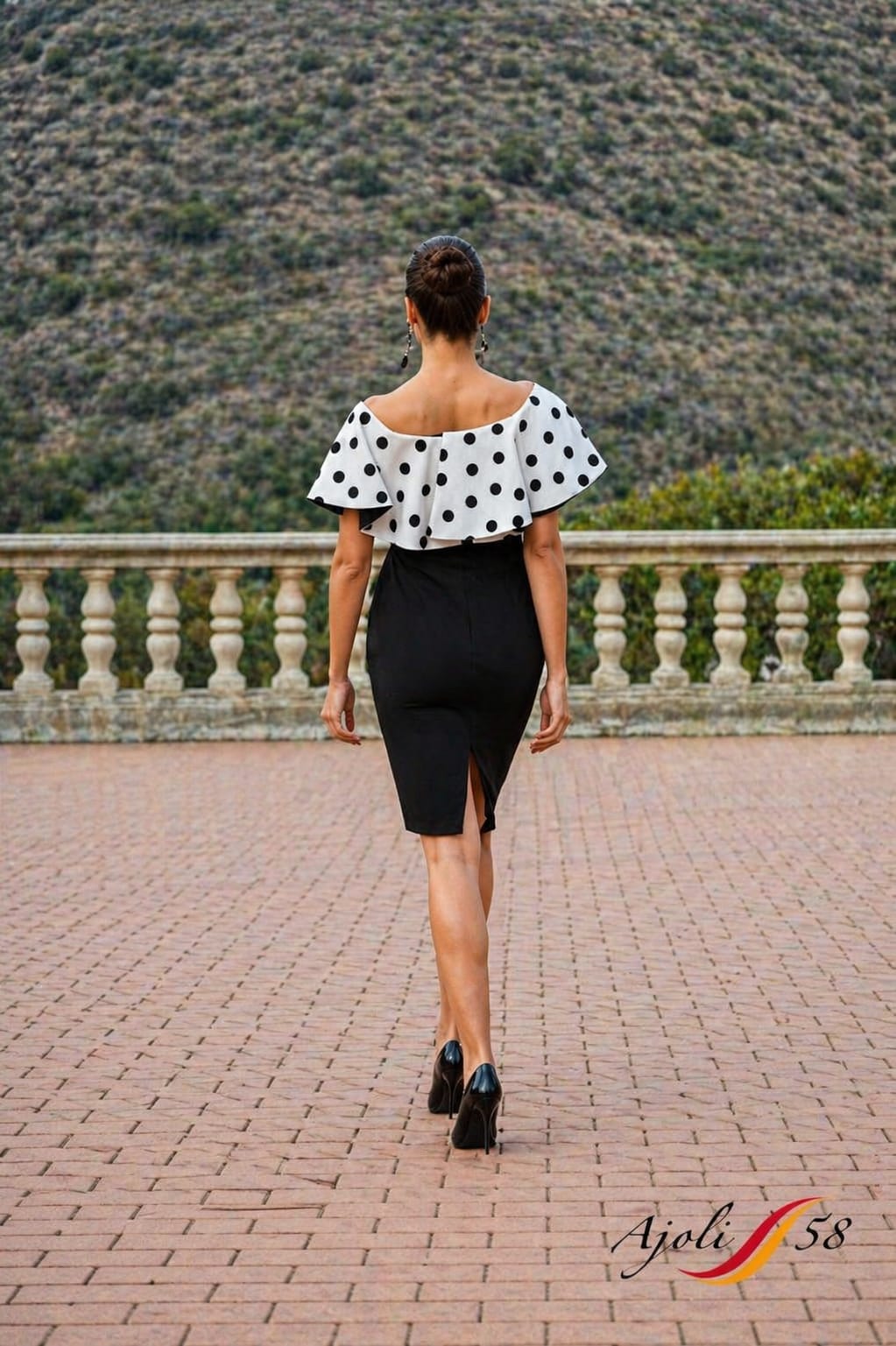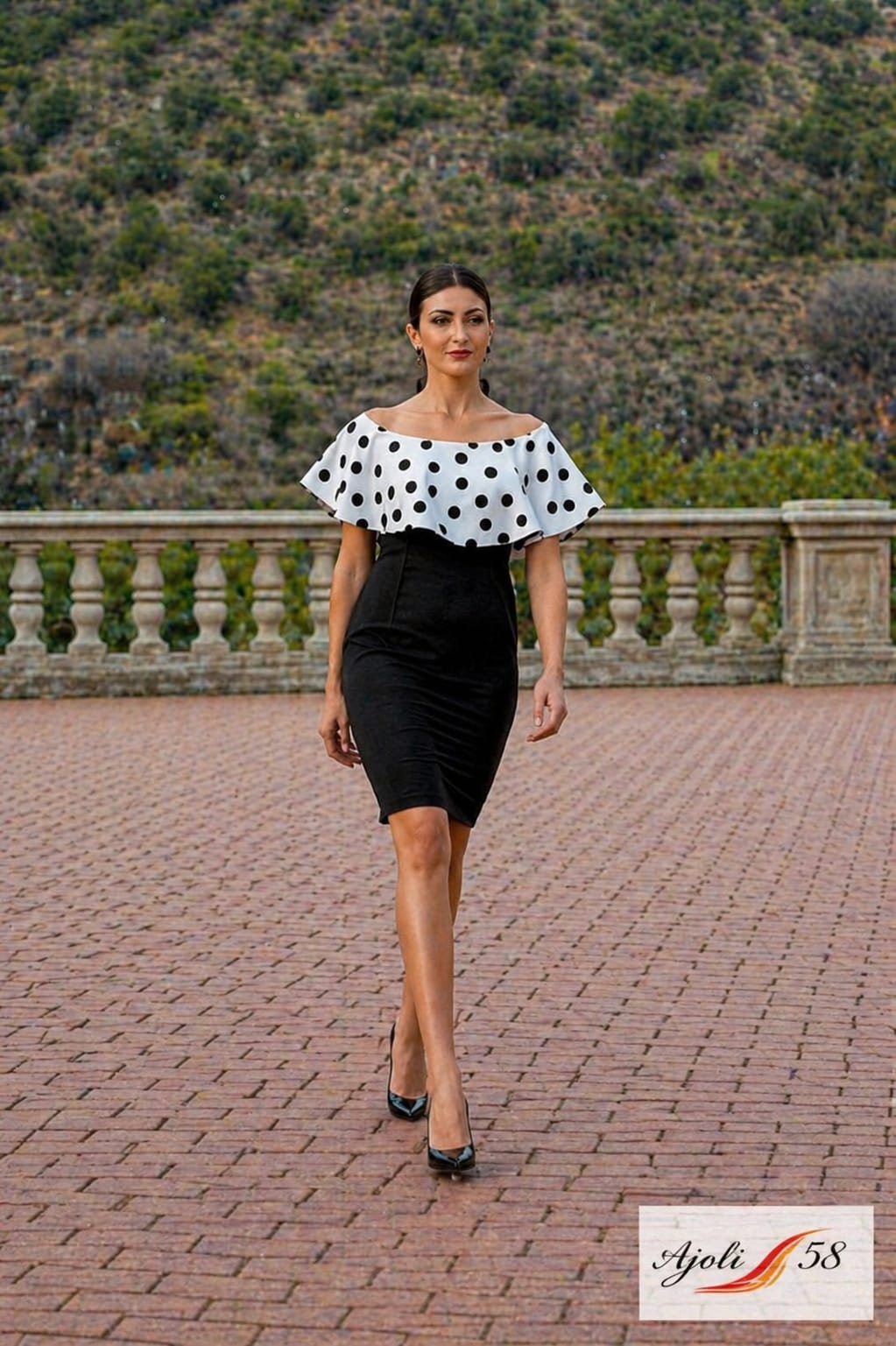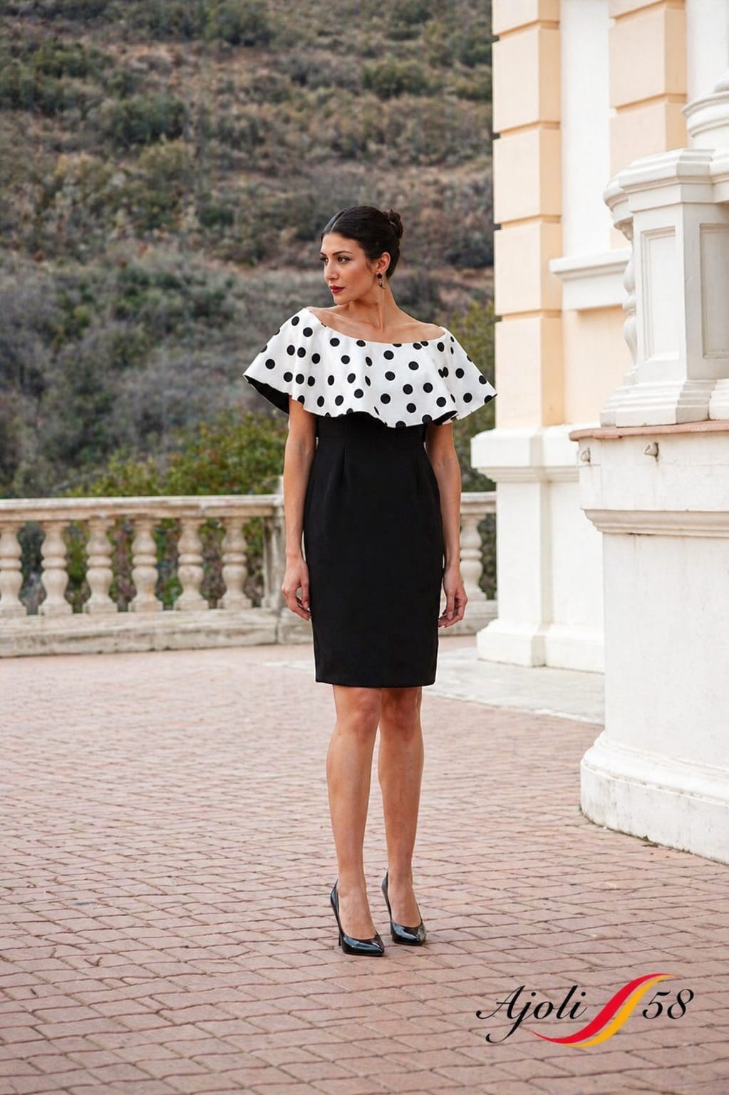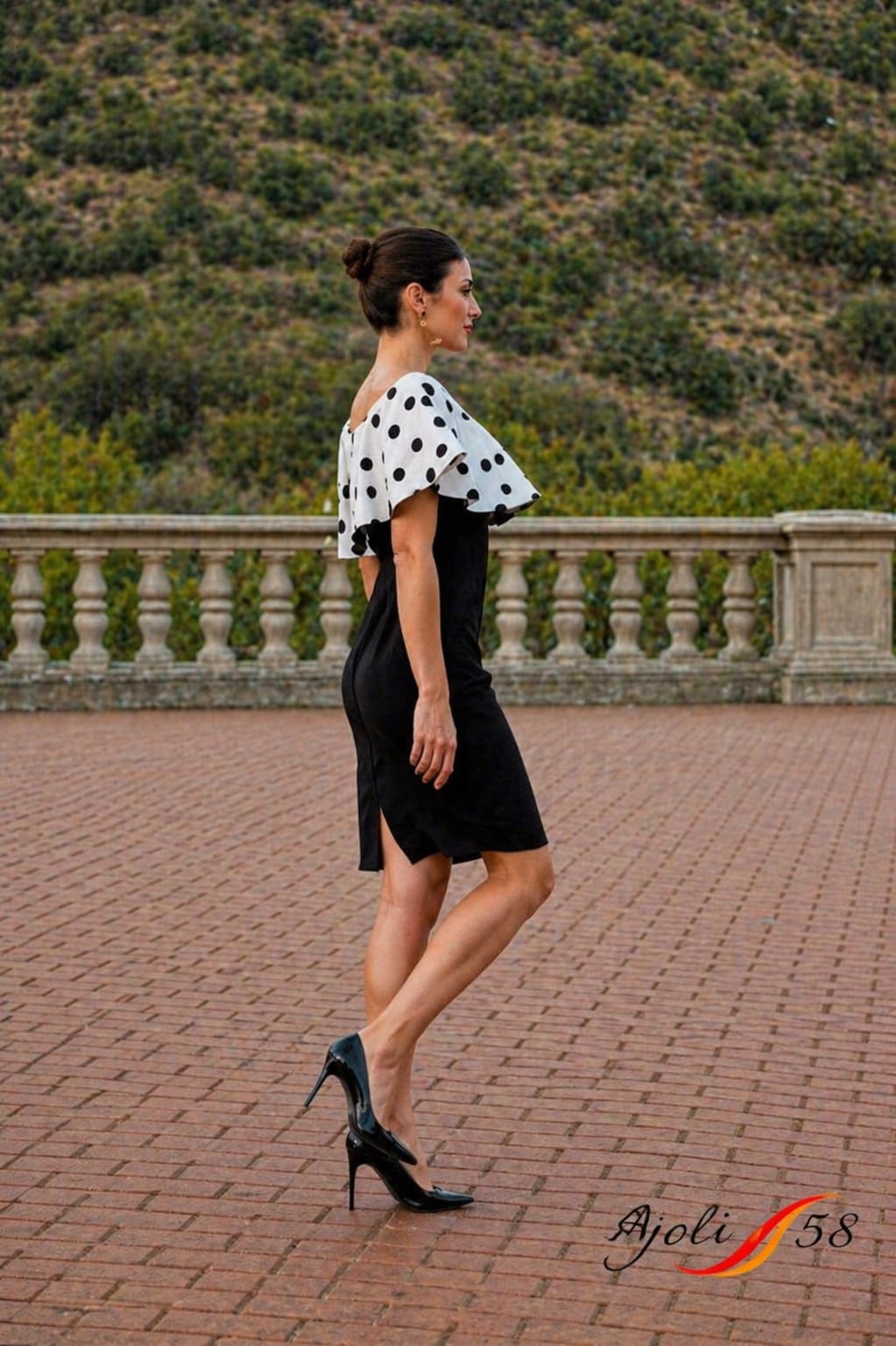 Vestido talle cintura, ajustado con pinzas la falda y costadillos al cuerpo.